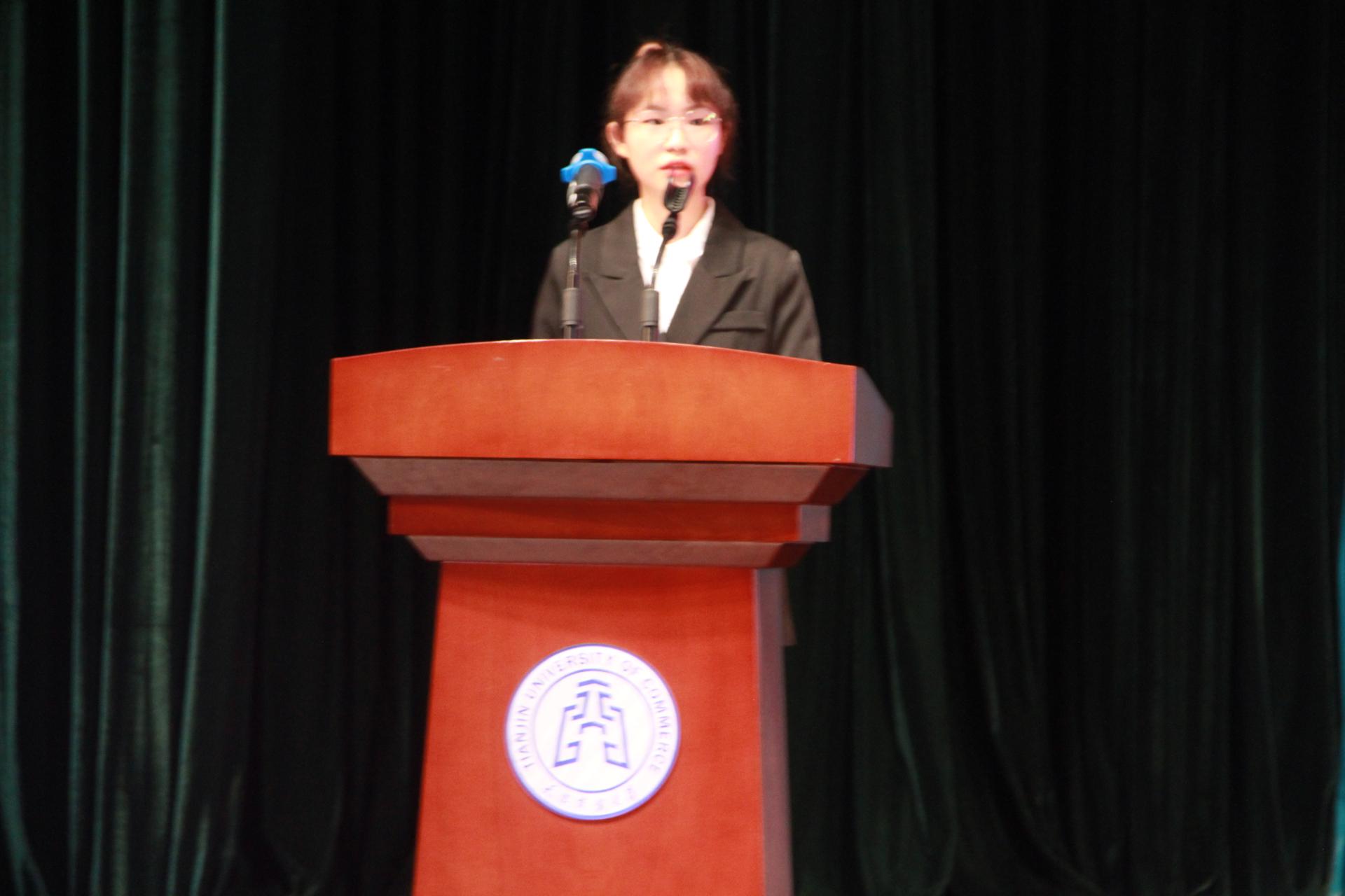 紧接着,员工代表们有序上台发言。2019级员工李慧丽分享了自己两年大学时光中丰富和实践和工作经历,鼓励新生在奋斗中成就自己;2021级研究生朱俊涛则勉励在座新生珍惜光阴,潜心钻研,苦练本领,扩充知识储备,为日后迈向社会奠定坚实基础;2021级新生颜岑宇,希望所有新生能够继续高三拼搏奋斗的精神,兼顾生活与学习,面对生活饱含热情,乘风破浪,铺就似锦前程。