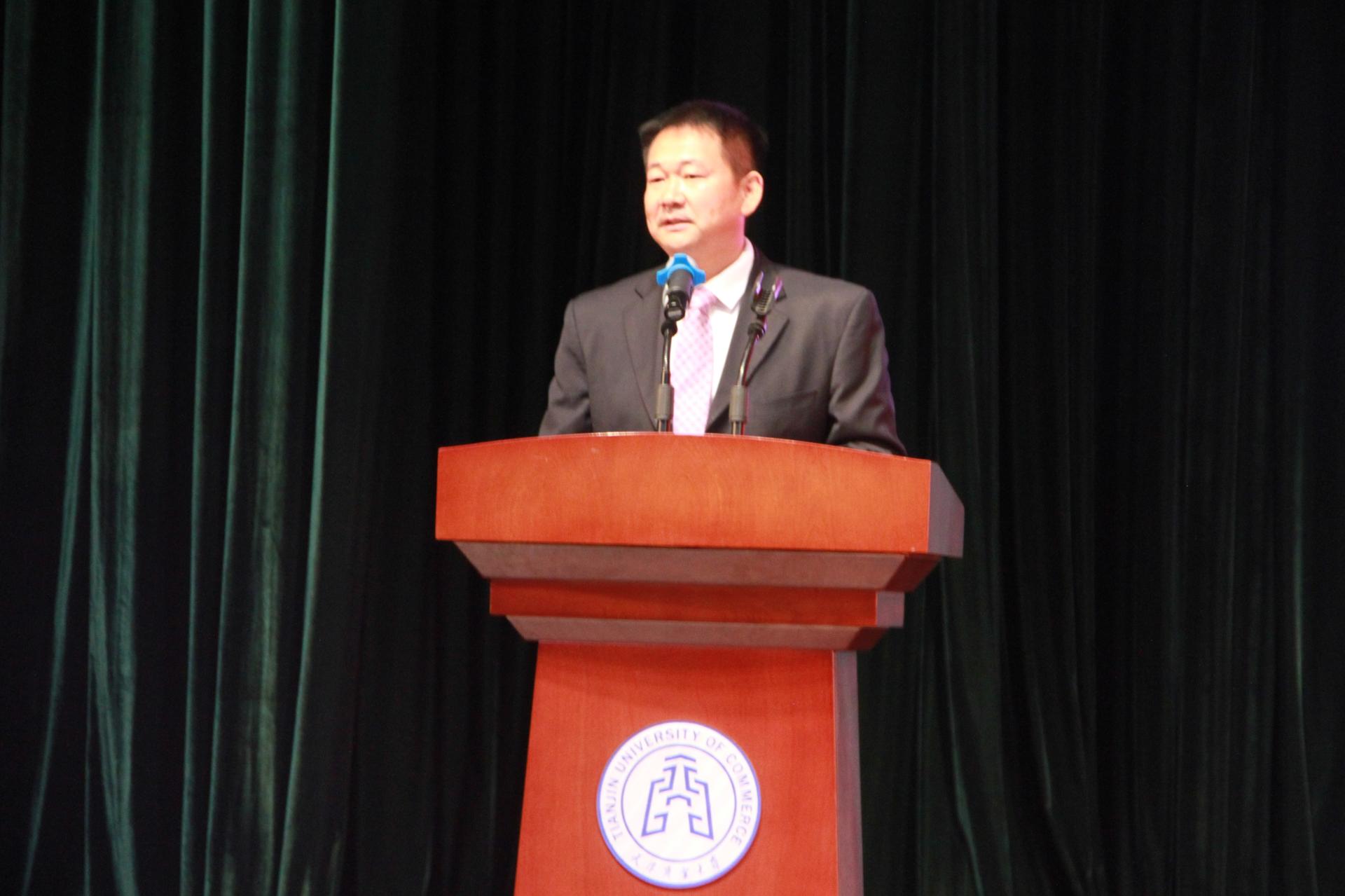 典礼在雄壮的国歌声中拉开序幕。王占斌用全英文致辞,向新生强调“保持阅读,充实自我”的重要意义。他提出,作为语言的学习者和传播者,不仅要心中有爱,更要有家国情怀,心系国家事,用当代老员工的昂扬姿态向世界讲好中国故事,展现bevictor伟德官网的独特风采。