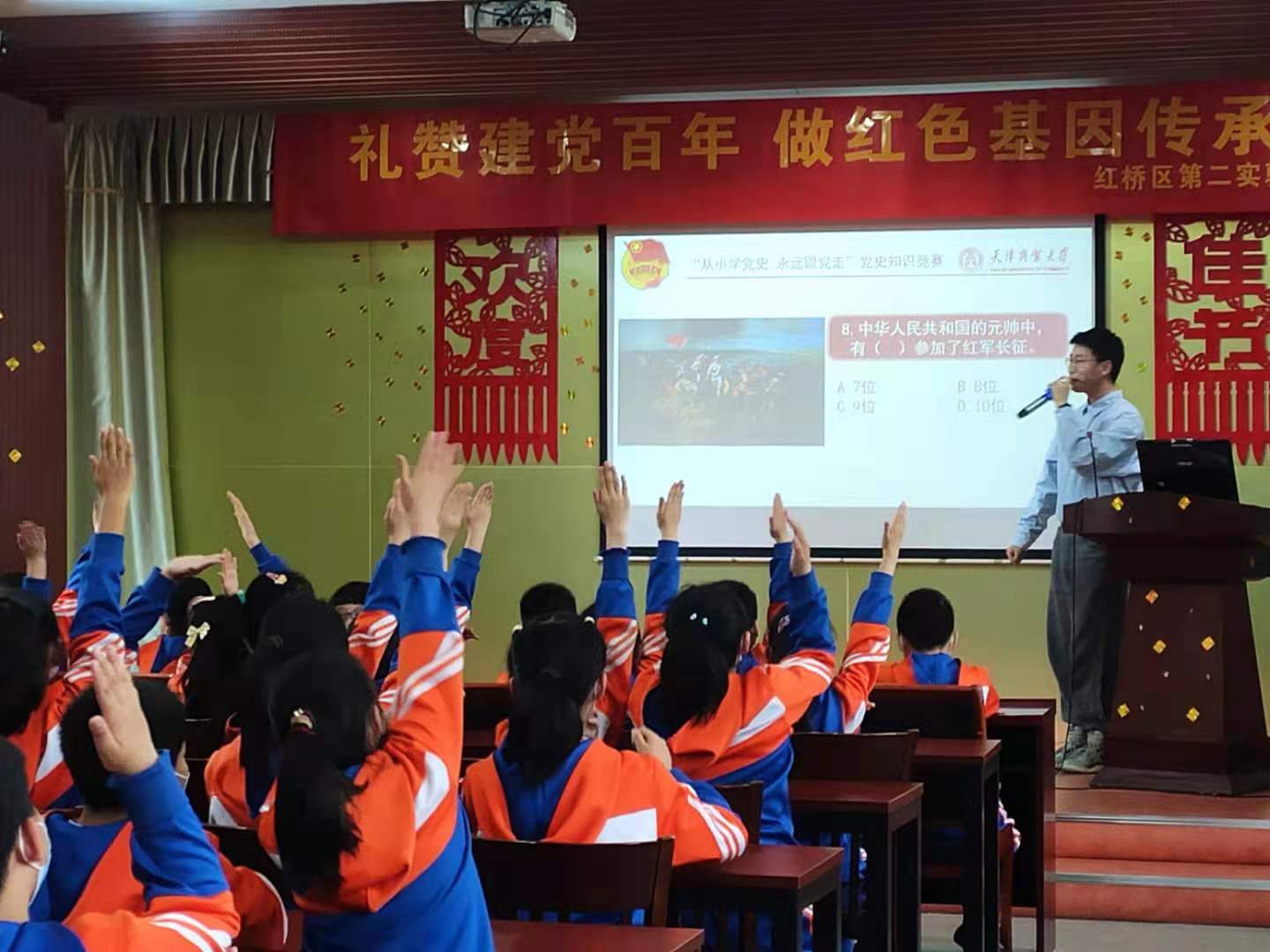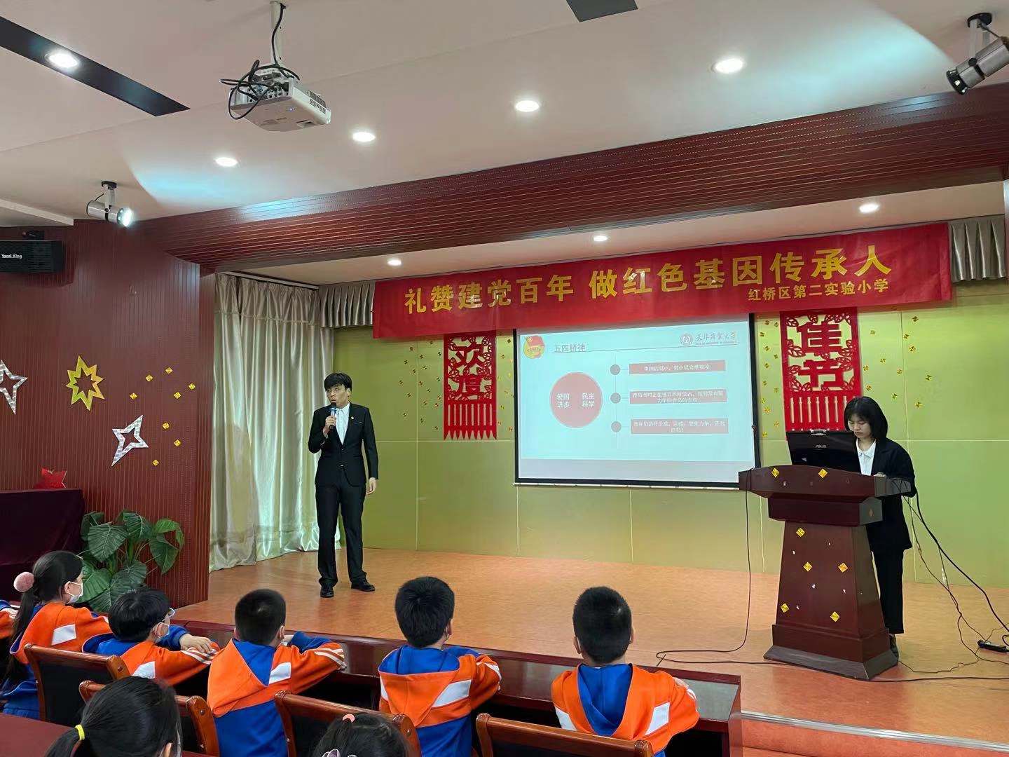 为深入贯彻落实党的十九大、十九届五中全会精神和习近平新时代中国特色社会主义思想及系列重要讲话精神,传承“党是先锋队、团是突击队、队是预备队”红色血脉,引导广大青少年员工树立正确价值观,推动老员工党员和青年团员积极融入社会、服务社会、回馈社会,bevictor伟德官网走出校园,与红桥区第二实验小学携手打造“红心向党,青春领航”党团共建工程。